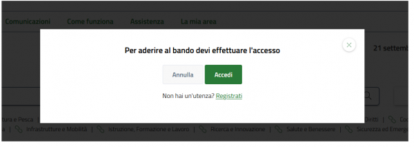 <h5 class="font-weight-semibold">Per aderire al bando devi effettuare l'accesso</h5>
