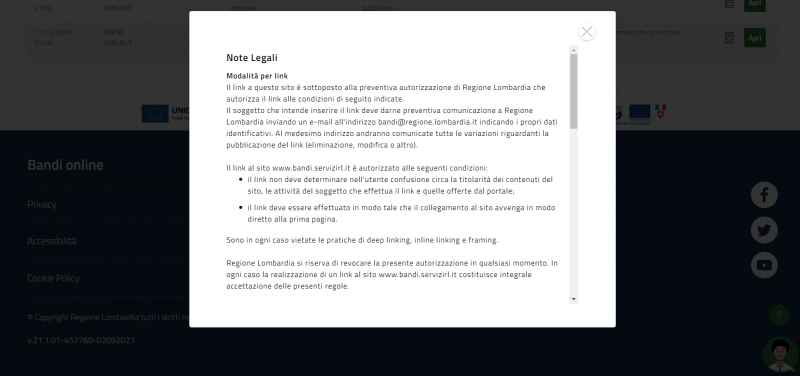 Solitamente si utilizza per dare rilevanza al messaggio che si sta inoltrando all'utente, una velatura nera ricopre tutta la pagina ed il messaggio è contenuto all'interno di un riquadro bianco. Ci sono tre tipi di modali: la modale del footer con barra di scorrimento verticale per contenuti lunghi, la modale comune e la modale con bottoni di risposta. Un'icona di chiusura a forma di 'x' è sempre posta nell'angolo alto di destra.